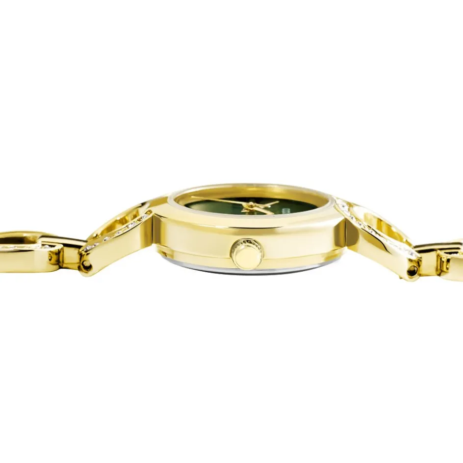 Montre Codhor Sarah Alliage Doré Ronde Quartz 24mm Lunette Strass Fond Vert Bracelet Alliage Doré Et Strass P100944-h