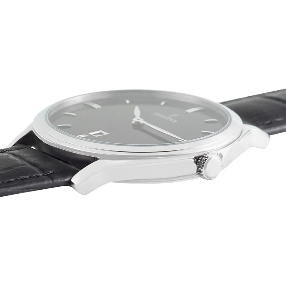 Montre Festina Classics Acier Blanc Ronde Quartz 39mm Fond Noir Bracelet Cuir Noir F167455