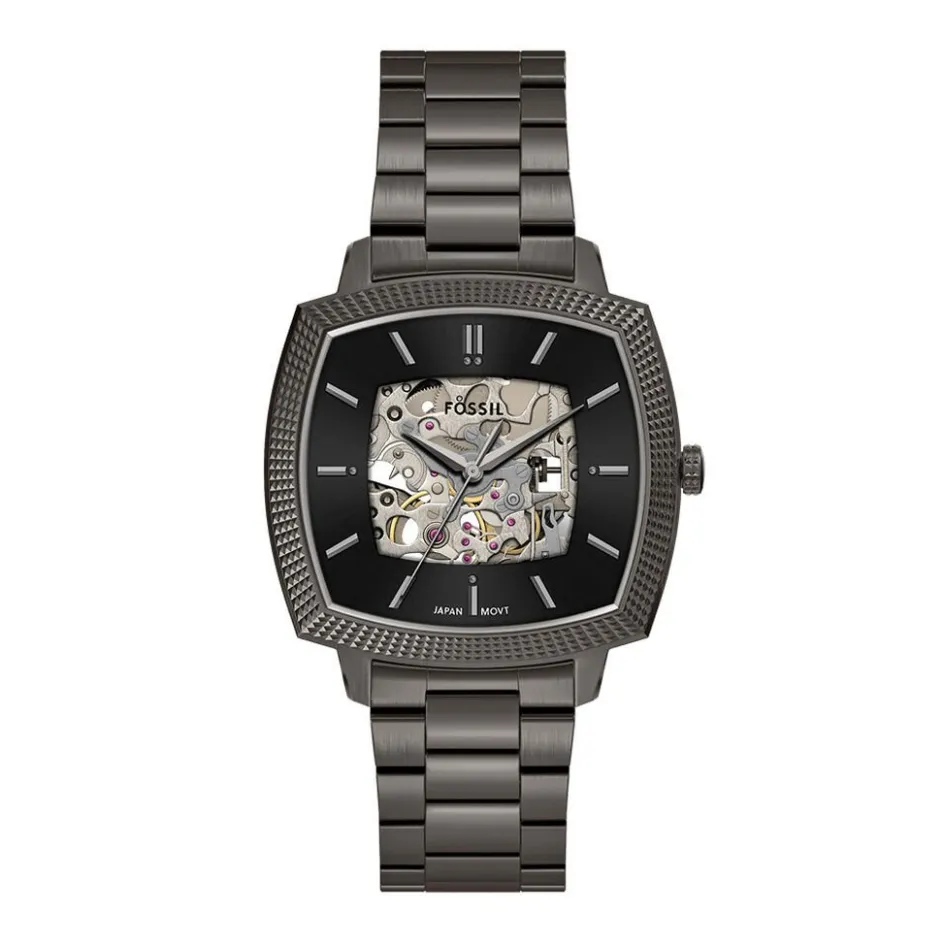 Montre Fossil Edition Limitee Nick Jonas Machine Luxe Acier Inoxydable Gris Automatique Carre 40Mm Fond Noir Coeur Ouvert Bracelet Acier Inoxydable Gris Le1219