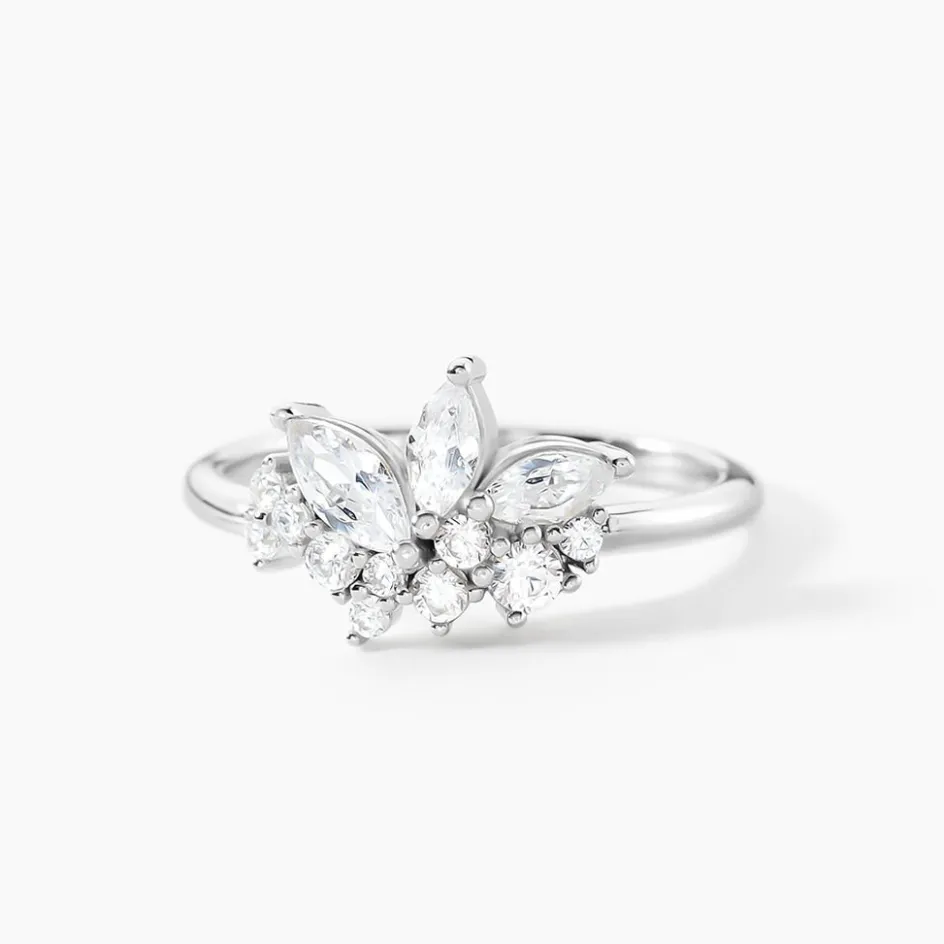 Bague Argent Blanc 925/1000 Multipierres Oxydes De Zirconium Taille Navette
