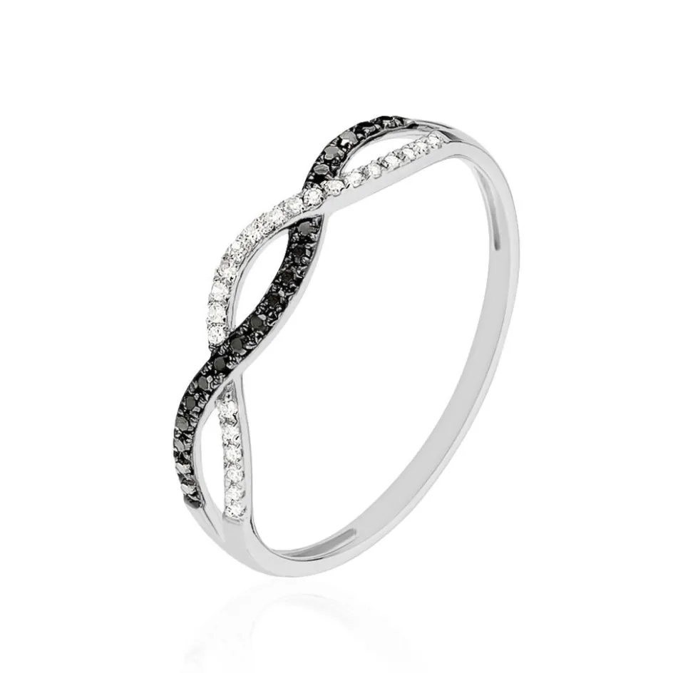 Bague Or Blanc 375/1000 Vagues Diamants Noirs Et Blancs