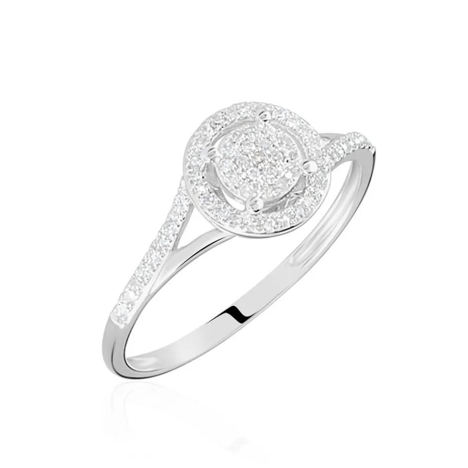 Bague Or Blanc 375/1000 Pavage Diamants Cercle