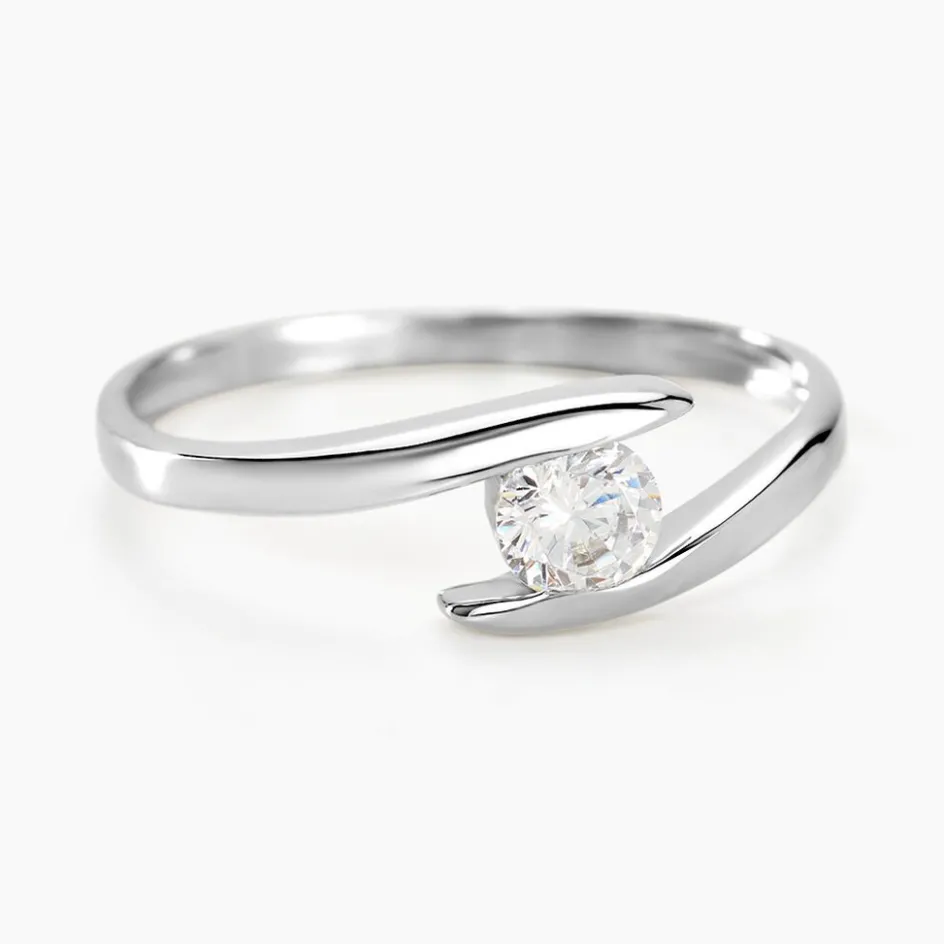 Solitaire Or Blanc 375/1000 Forme Couteau Oxyde De Zirconium Central