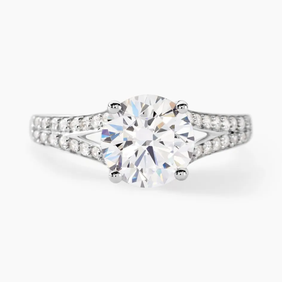 Solitaire Or Blanc 375/1000 Oxyde Central Et Corps De Bague Double Accompagne Oxydes