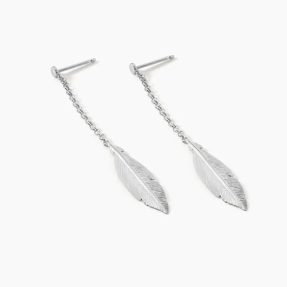 Boucles D’oreilles Pendantes Argent Blanc 925/1000 Plumes Mailles Forcat