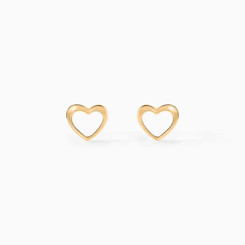 Boucles D’oreilles Or Jaune 375/1000 Puces C艙urs Ajoures