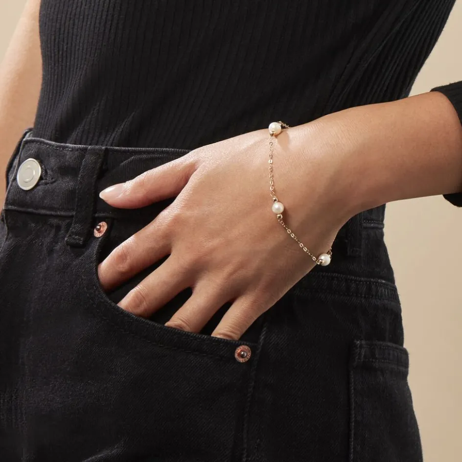 Bracelet Or Jaune 375/1000 Perles De Culture 6.5mm 19cm