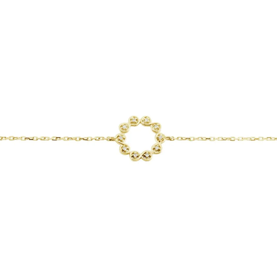 Bracelet Or Jaune 375/1000 Cercle Diamants Maille Forcat 16+2cm