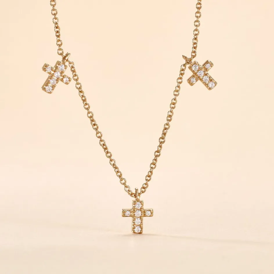 Collier Plaque Or Jaune Fatos Croix Pavage Oxydes De Zirconium 44cm