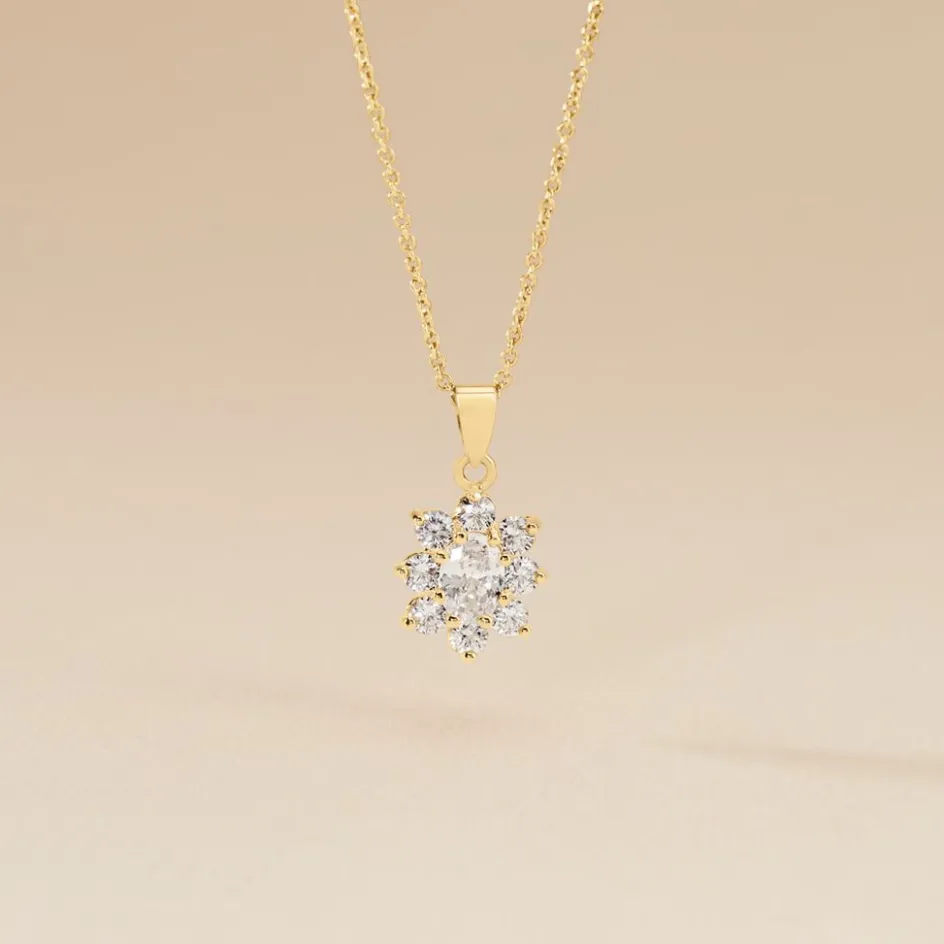Collier Plaqué Or Jaune Entourage Marguerite Oxydes De Zirconium Chaine Forcat 44cm