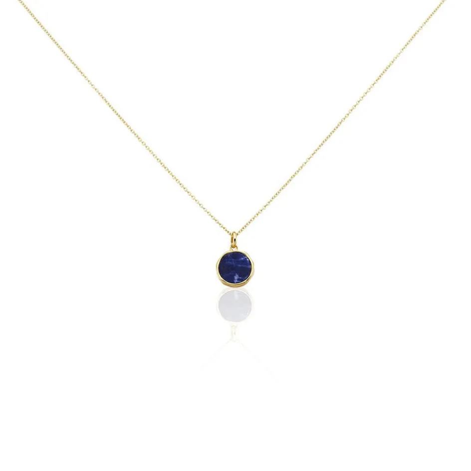 Collier Plaqué Or Pastille Sodalite Bleue Maille Forcat 45cm