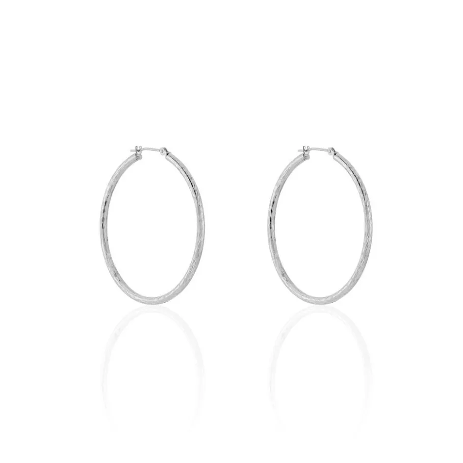 Créoles Or Blanc 375/1000 Fil Rond Effet Diamanté Largeur 2mm Diamètre 35mm