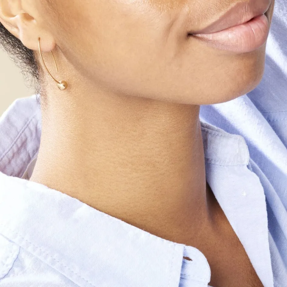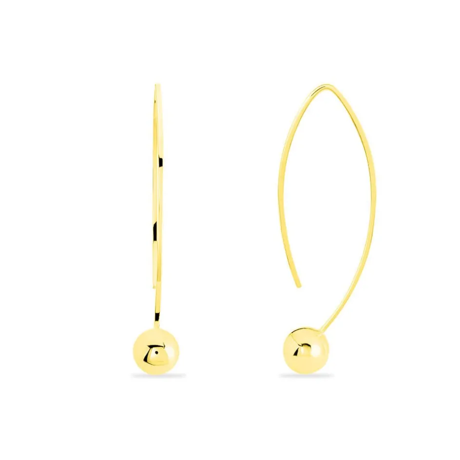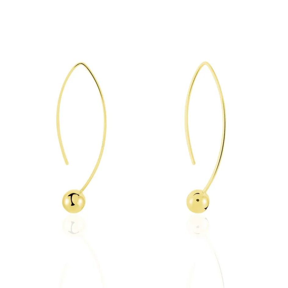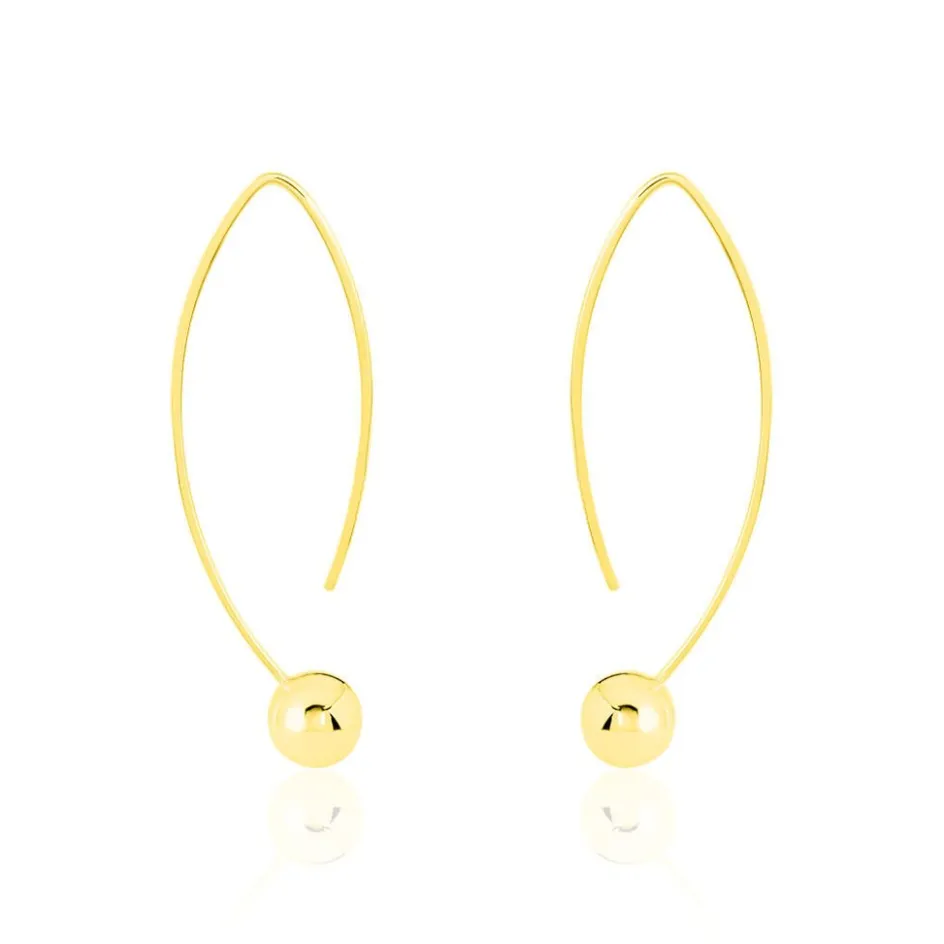 Creoles Or Jaune 375/1000 Ouvertes Forme Amande + Boule Or Diam 33mm