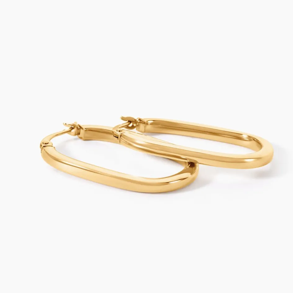 Créoles Or Jaune 375/1000 Ovale Fil Carré Largeur De Fil 2Mm Diametre 25Mm