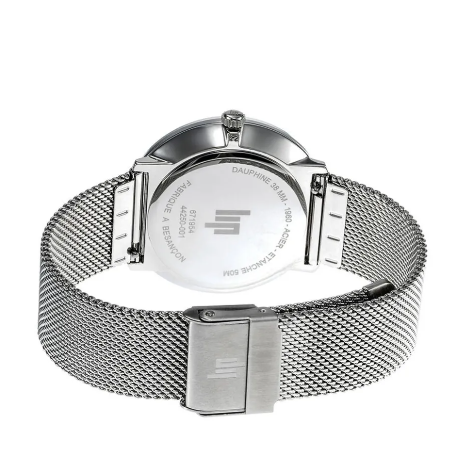 Montre Lip Dauphine Acier Argente Ronde Quartz 38mm Fond Bleu Bracelet Acier Argente Milanais 671954
