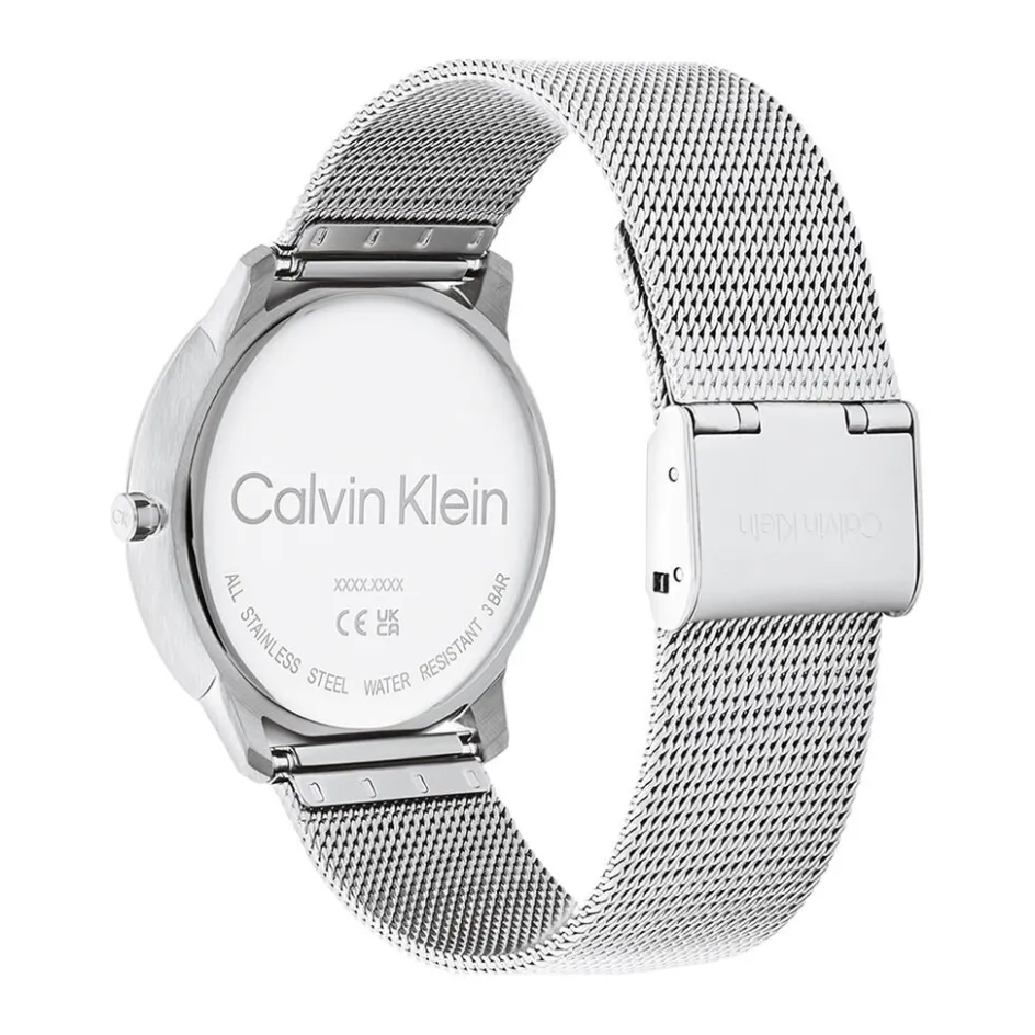 Montre Calvin Klein Iconic Mesh Acier Blanc Ronde Quartz 40mm Fond Bleu Bracelet Maille Milanaise Acier Argenté 25200031