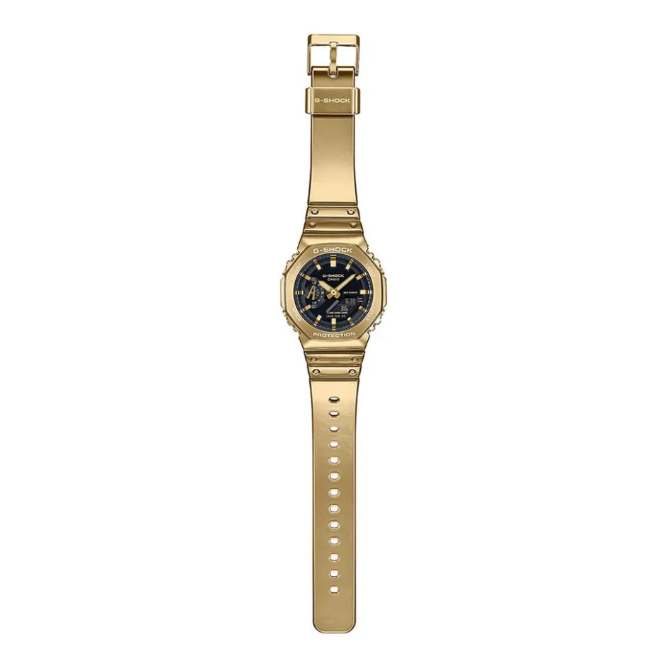 CASIO G-SHOCK Herren Quarzuhr GM-2100YMG-9AER | Gehäusefarbe: Gelb | Gehäusematerial: Edelstahl | Verstellsystem Armband: Dornschließe | Armbandtyp: Spange | Farbe des Zifferblatts: Schwarz | Anzeige: Analog Digital | Glasmaterial: Mineral | Wasserdichtigkeit: 200 m (20atm) | Kollektion: GM-2100YMG-9AER | Mechanismus: Quarz