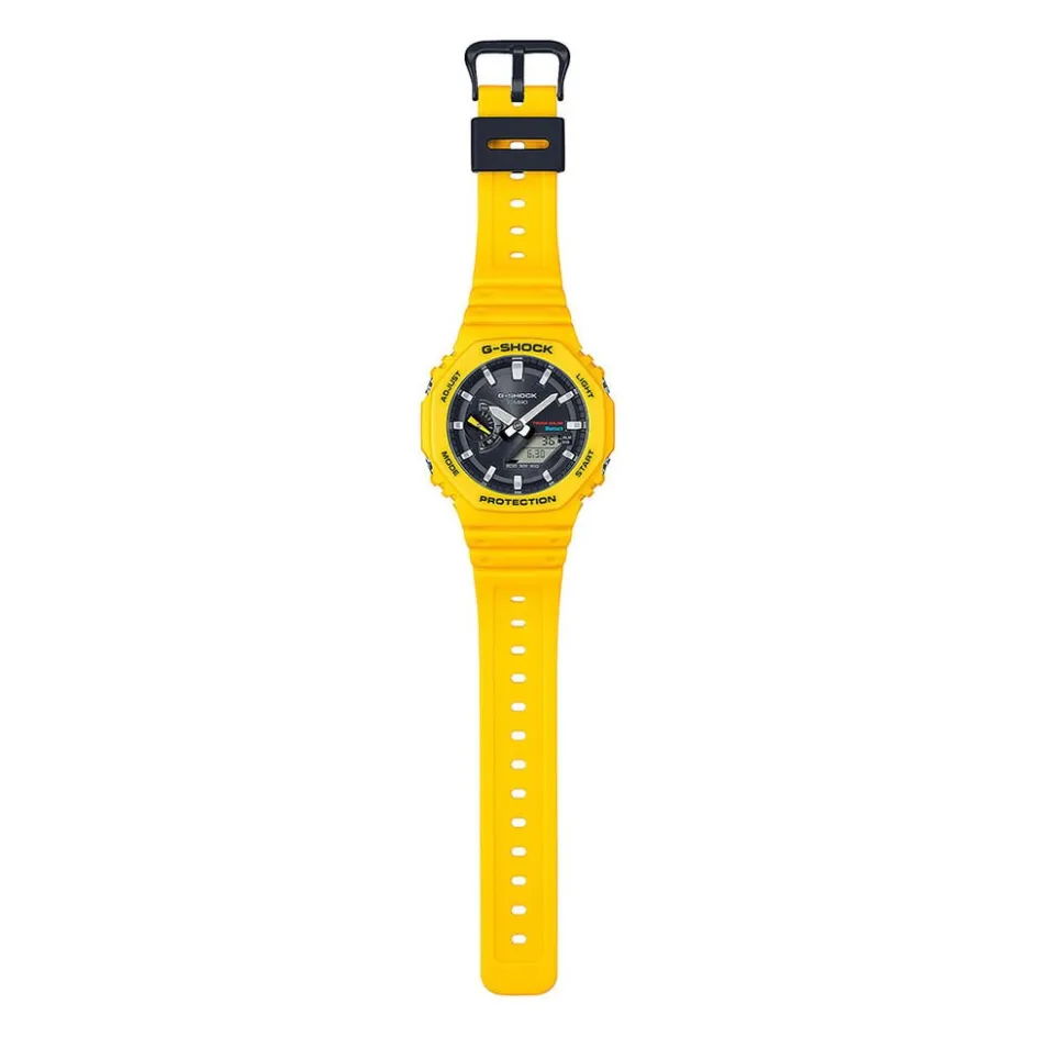 Montre Casio G-shock Résine Jaune Ronde Quartz Solaire Anadigital 45.5mm Fond Noir Bracelet Résine Jaune Ga-b2100c-9aer