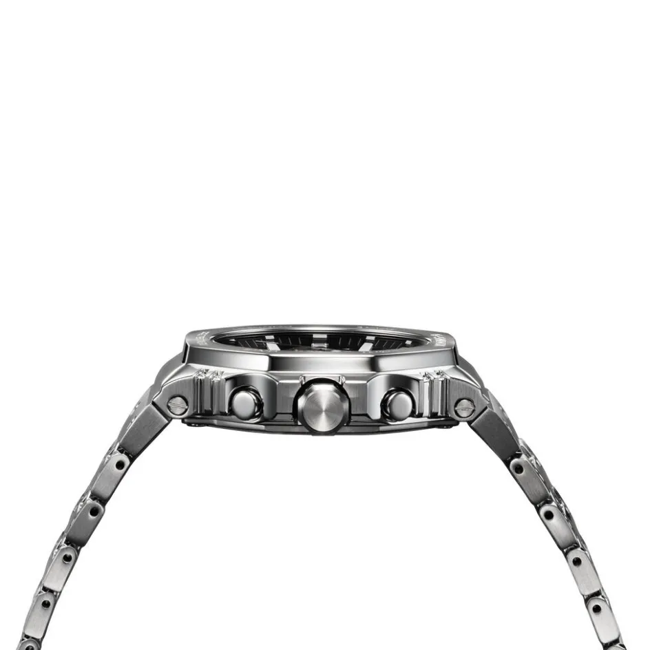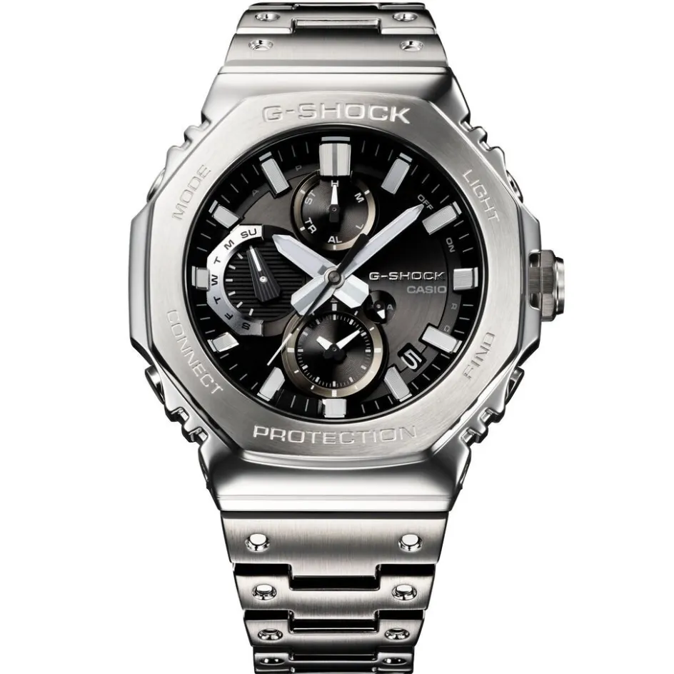 Montre Casio G-shock Premium Acier Argenté Ronde Quartz Solaire 46.3mm Multifonctions Fond Noir Bracelet Acier Argenté Gmc-b2100d-1aer