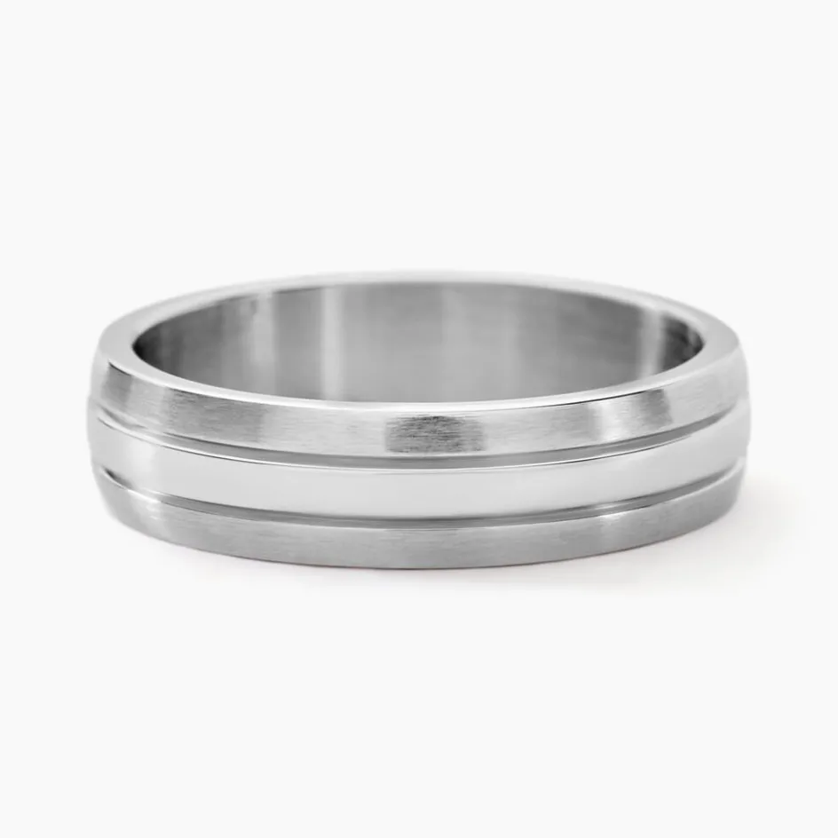Bague Acier Inoxydable Blanc Liseré Central Brillant
