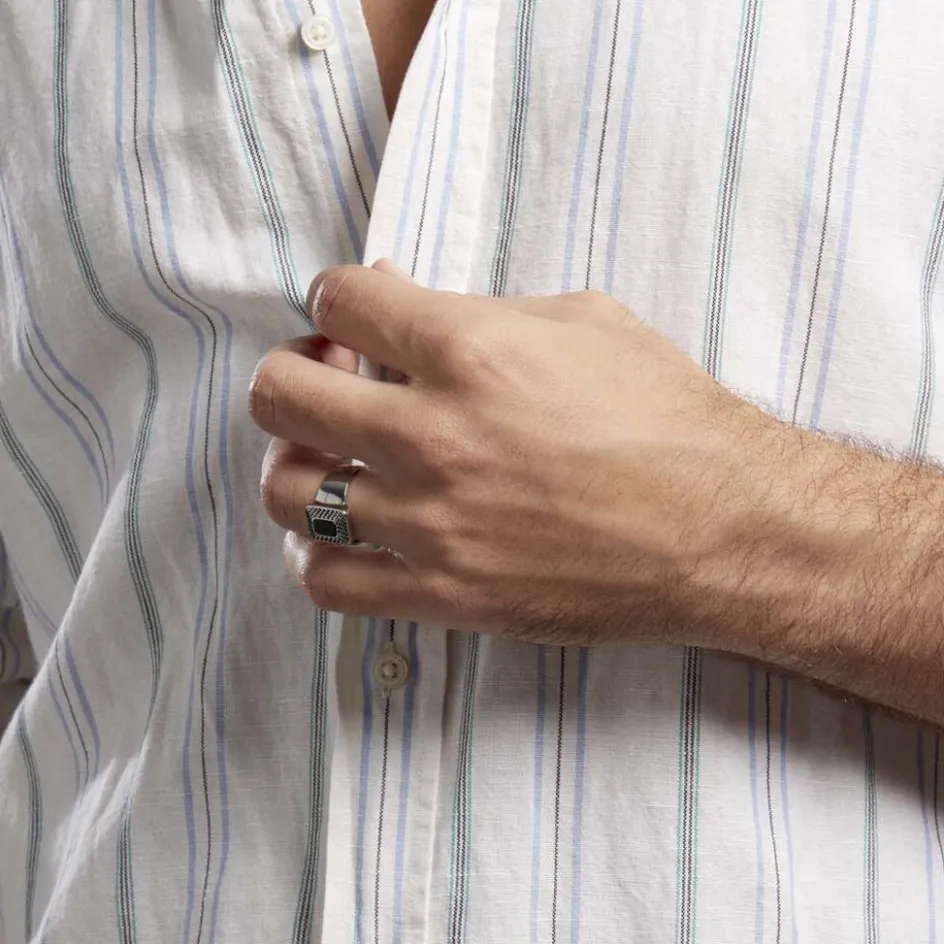 Bague Acier Vieilli Agate Noire Entourage Grave