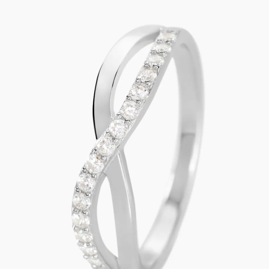 Bague Argent Blanc 925/1000 Croises Oxydes De Zirconium