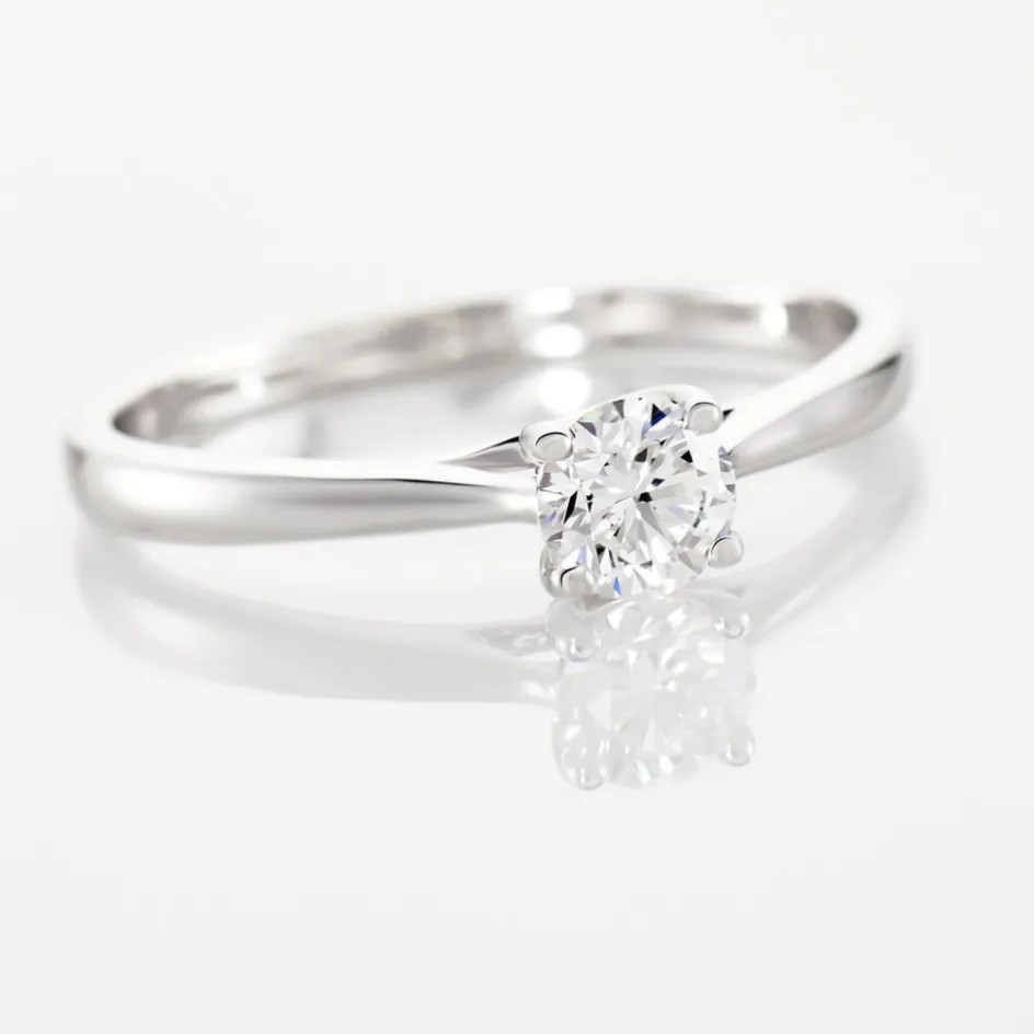 Solitaire Or Blanc 750/1000 Diamant Central Synthetique 0.30cts Serti 4 Griffes
