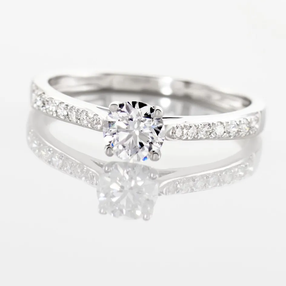 Solitaire Accompagne Or Blanc 750/1000 Diamant Synthetique 0.50cts