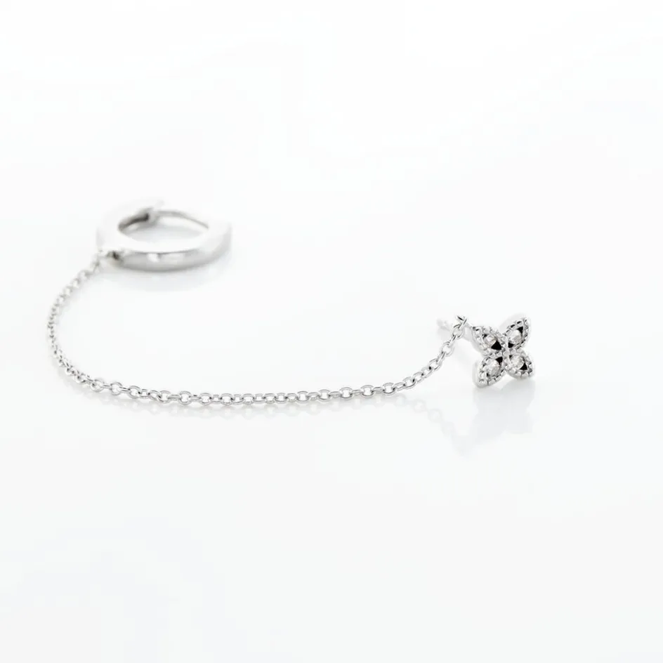 Bijou D’oreille Unitaire Argent Blanc 925/1000 Creole Et Etoile Pavage Oxydes De Zirconium Maille Forcat