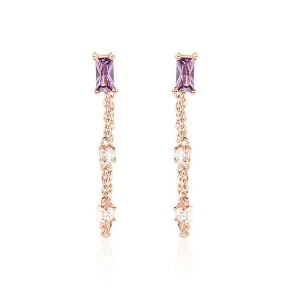 Boucles D’oreilles Pendantes Argent Rose 925/1000 Oxyde De Zirconium