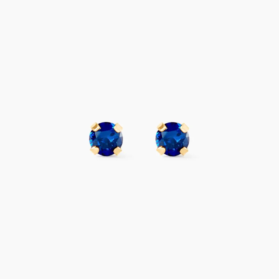 Boucles D’oreilles Or Jaune 375/1000 Puces Oxyde De Zirconium Bleu Fonce 3mm