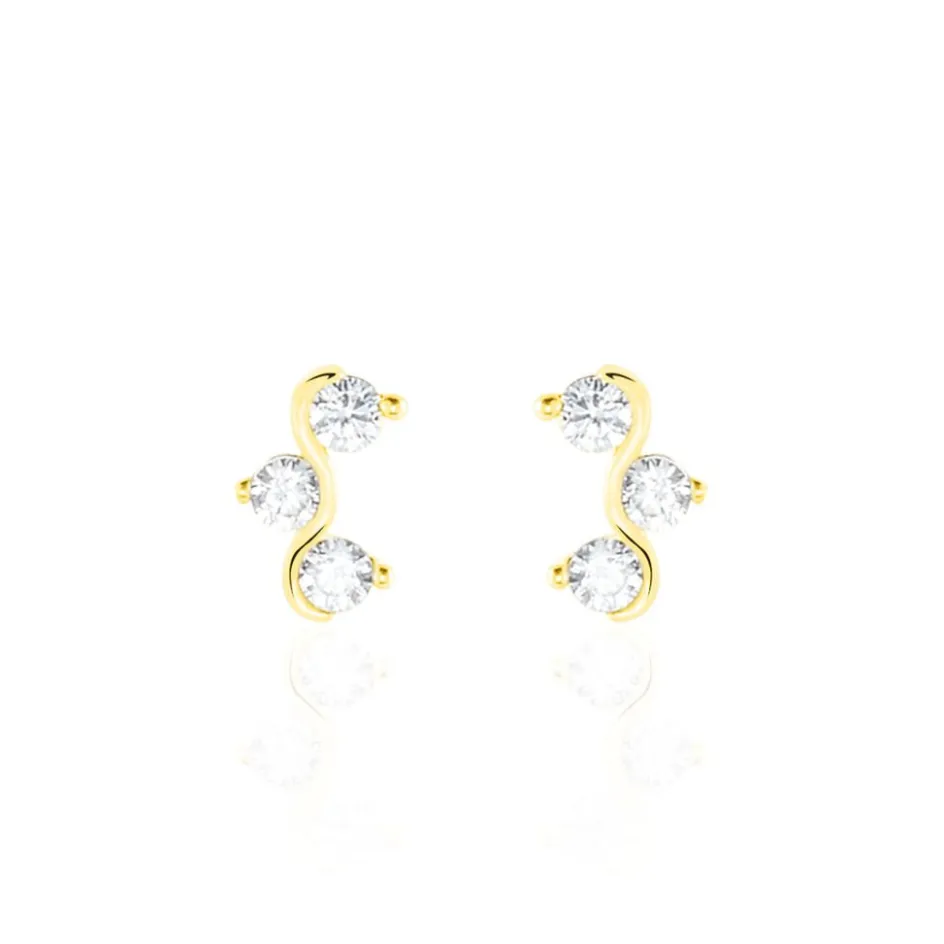 Boucles D’oreilles Or Jaune 375/1000 Vague Oxydes De Zirconium