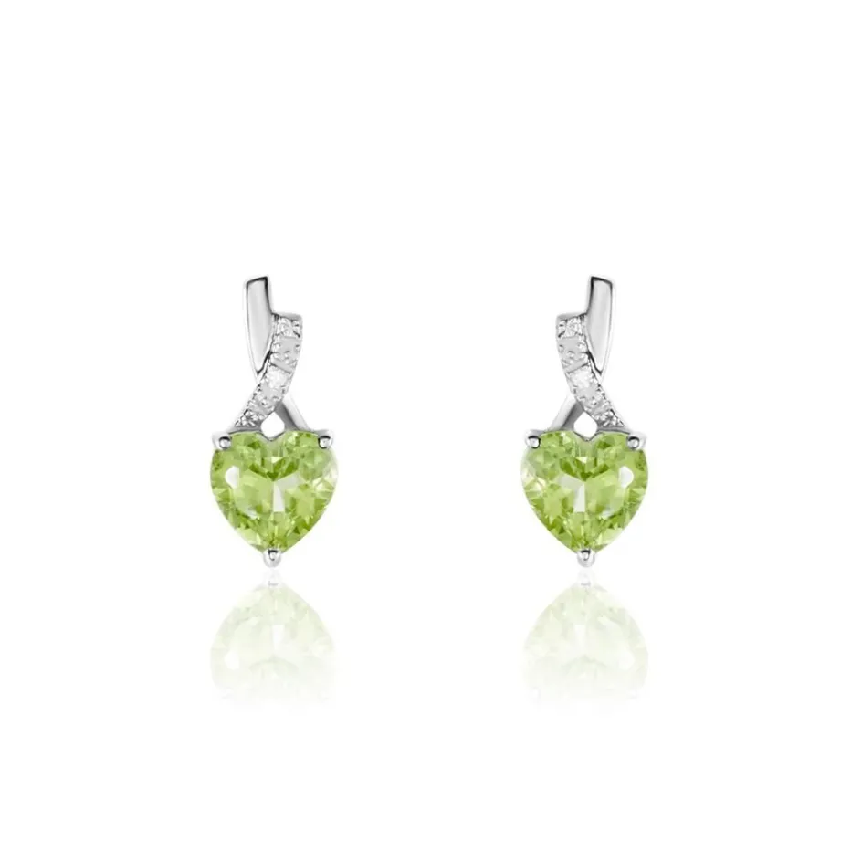 Boucles D’oreilles Puces Or Blanc 375/1000 Péridot Vert Serti Griffes