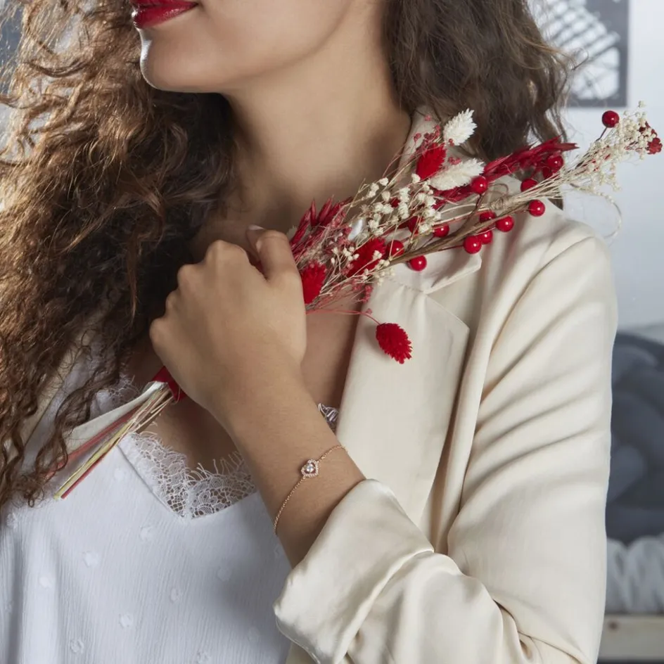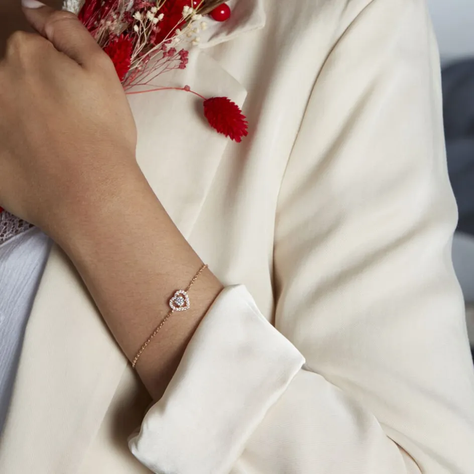 Bracelet Plaqué Or Jaune C艙ur Entourage Oxydes De Zirconium 18cm