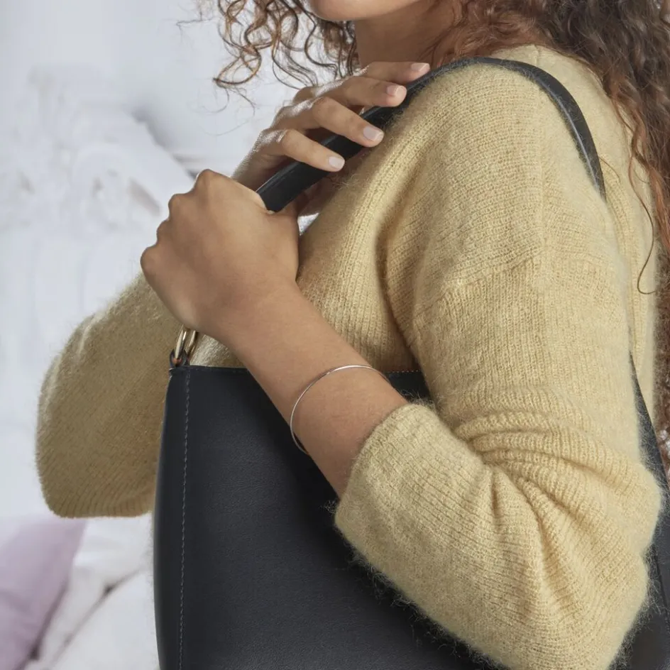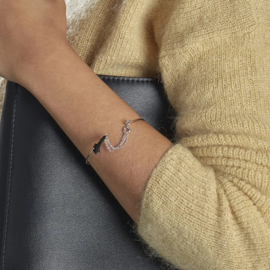 Bracelet Argent 925/1000 Jonc Pompon Noir 6.5*5.5cm