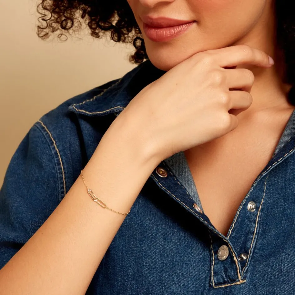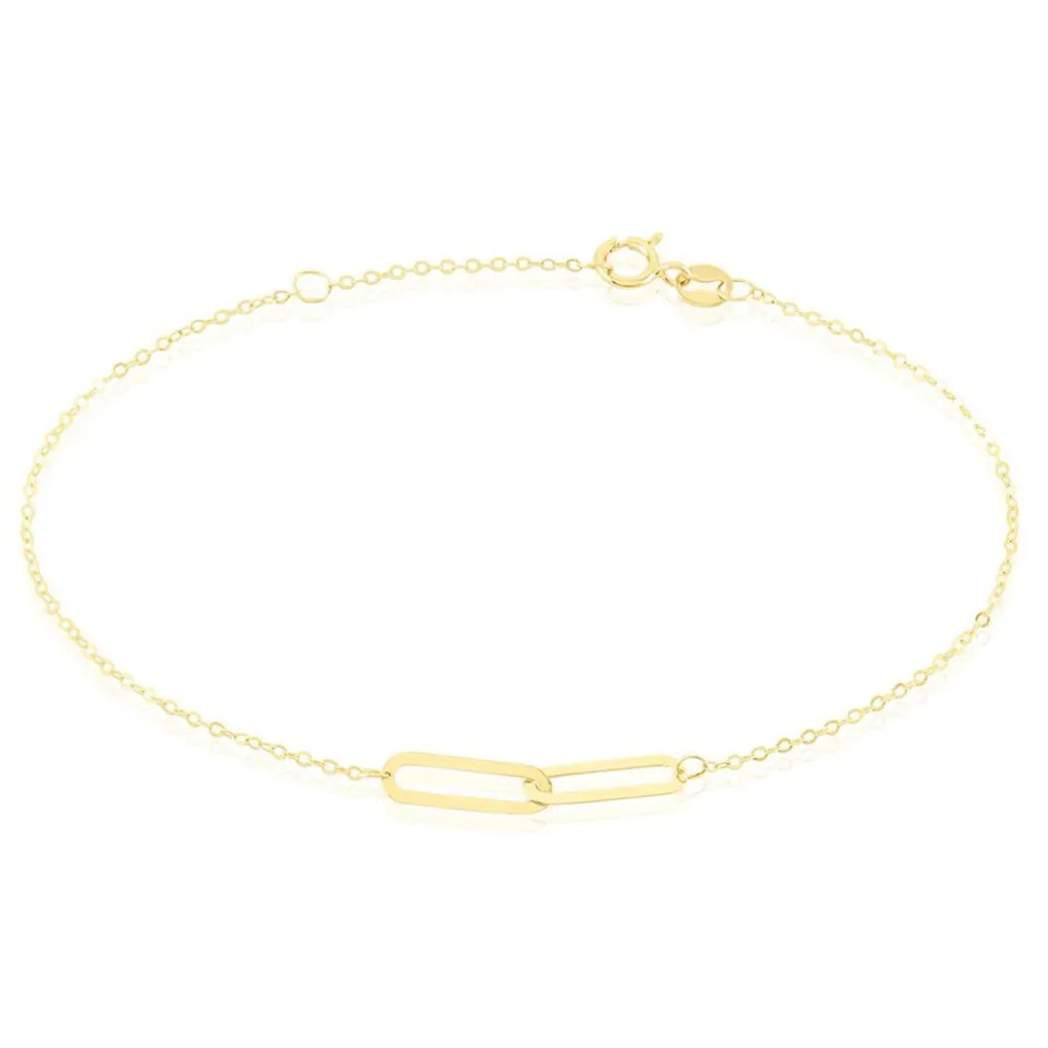 Bracelet Or Jaune 375/1000 Maillons Ajoures Maille Forcat Ronde 18cm