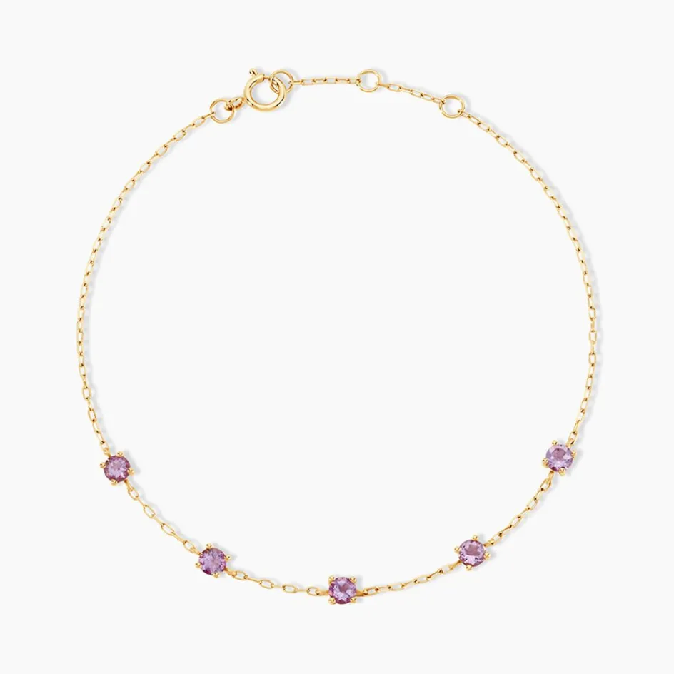 Bracelet Or Jaune 375/1000 5 Amethystes 0,5Cts Serti Griffes Maille Forcat 16+2Cm