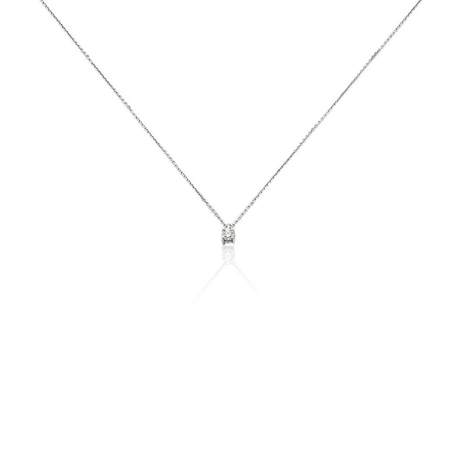 Collier Or Blanc 750/1000 Diamant 0.16cts Diamant Serti 4 Griffes Beliere Mobile Maille Forcat 40+2cm