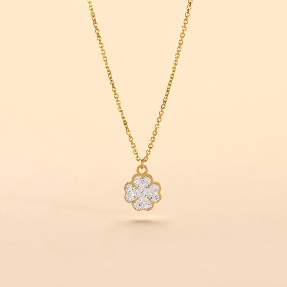Collier Or Jaune 375/1000 Trefle Glitter Argente Maille Jaseron 40+2cm