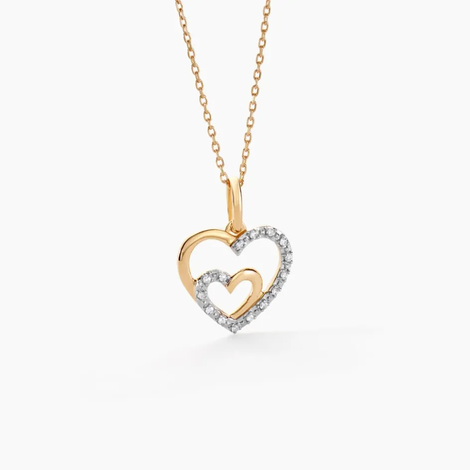 Collier Or Jaune 375/1000 Forme Double C艙ur Pavage Diamants Maille Forçat 42cm