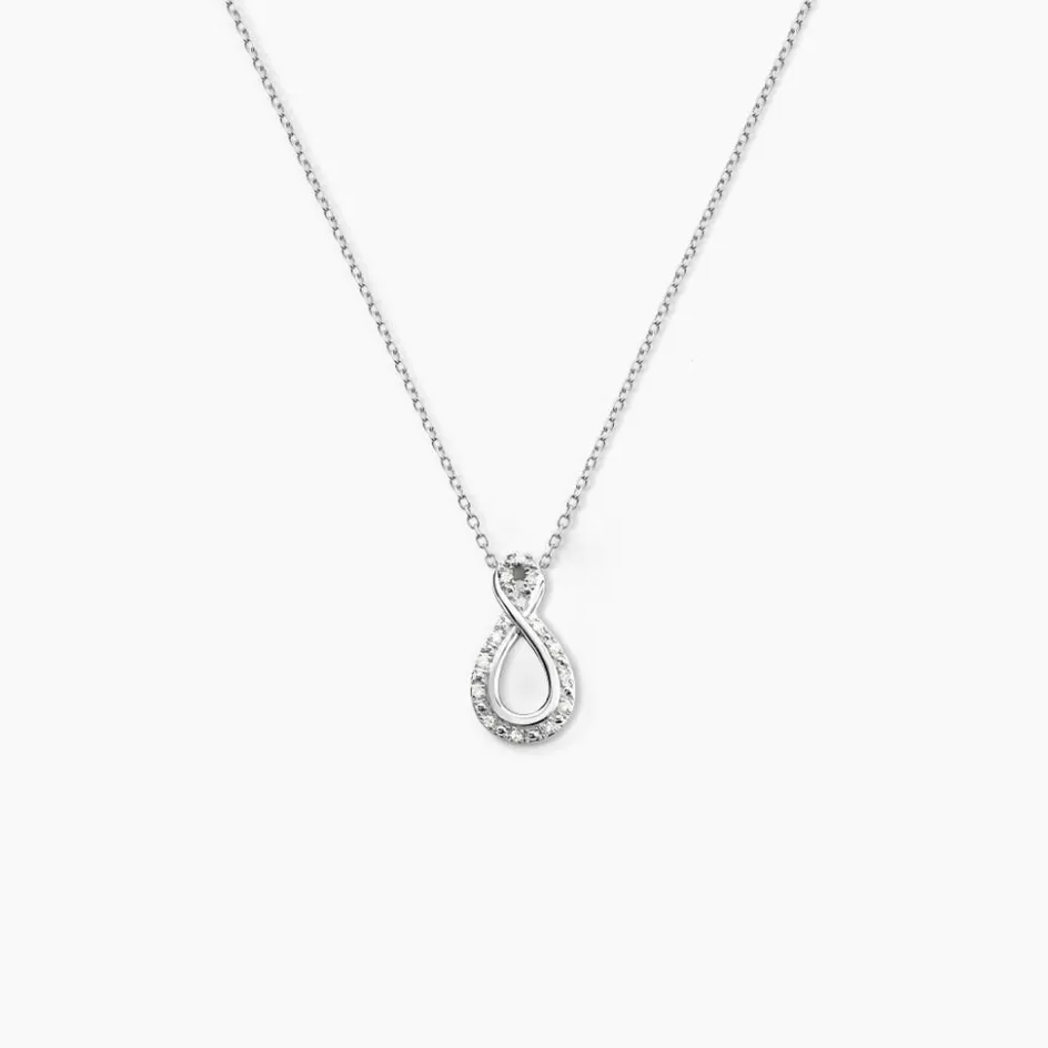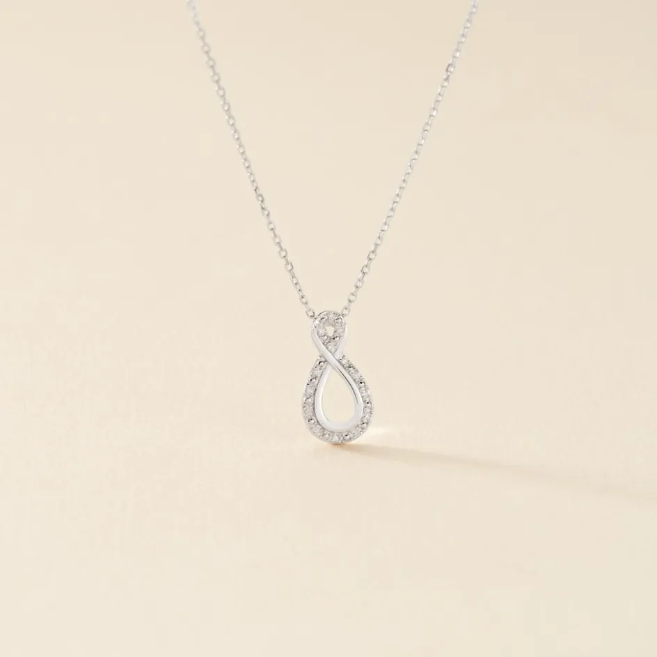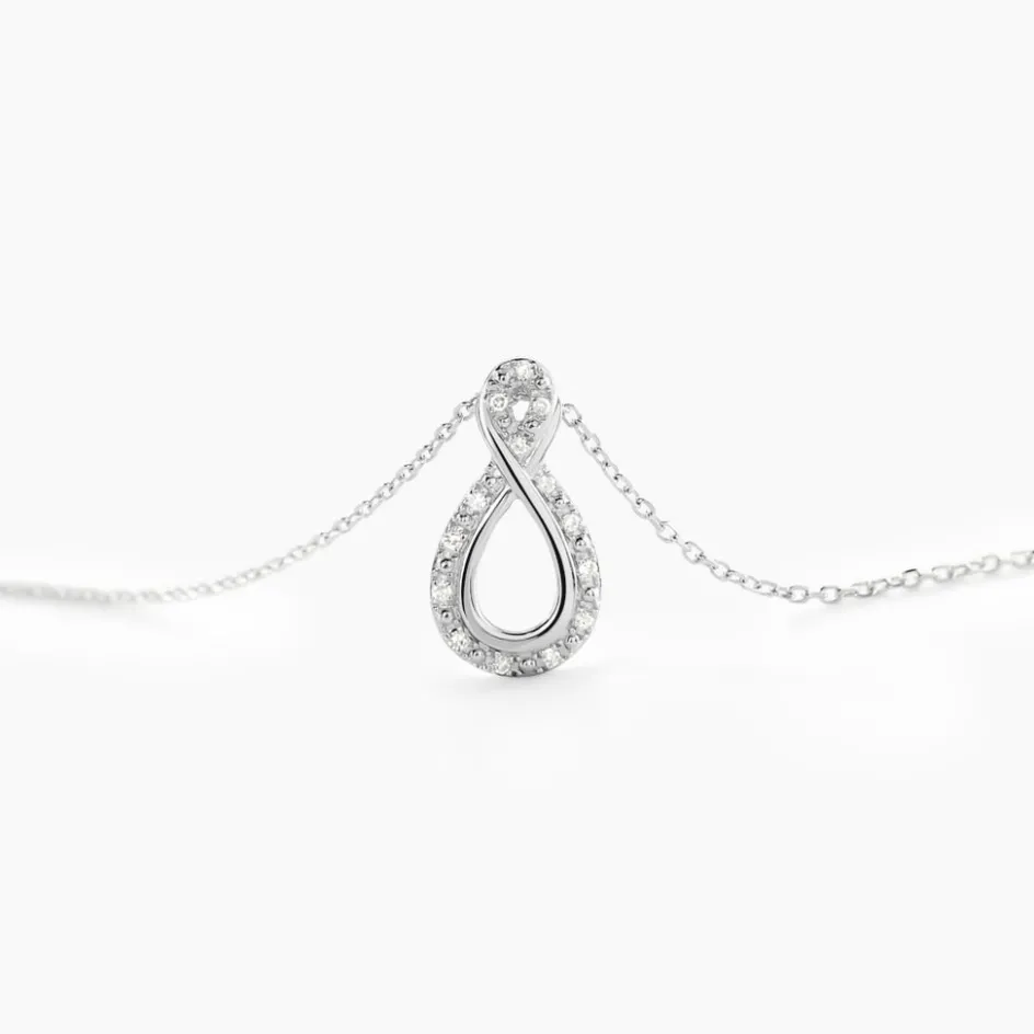 Collier Or Blanc 375/1000 Forme Infini Goutte Pavage Diamants 42cm