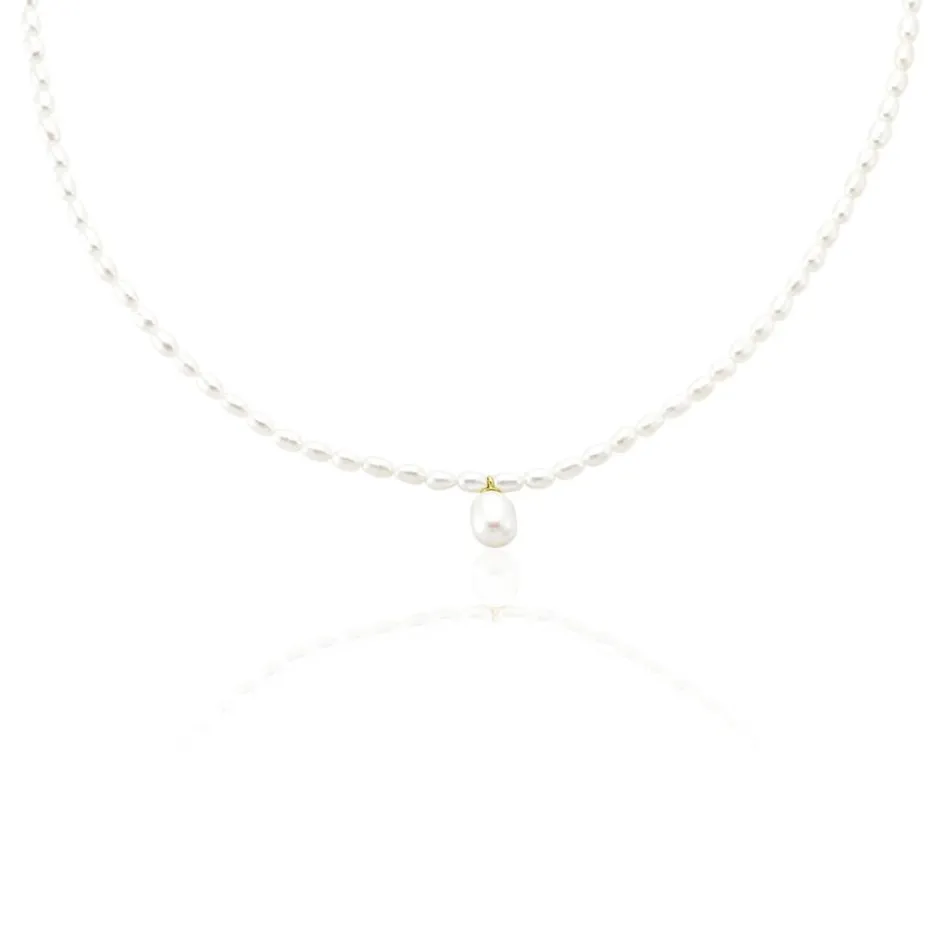 Collier Or Jaune 375/1000 Perles De Culture 3.5/4mm Et 7.5/8mm Grain De Riz Et Poire 45cm