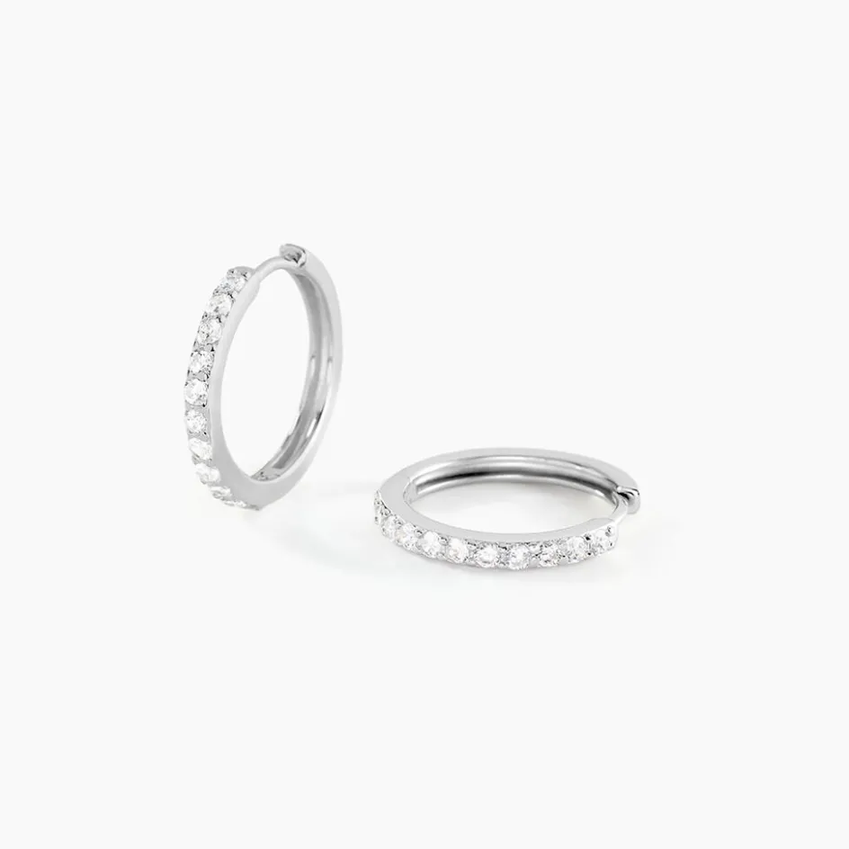 Créoles Classique Argent Blanc 925/1000 Oxydes De Zirconium Serti Griffes Diamètre 20mm