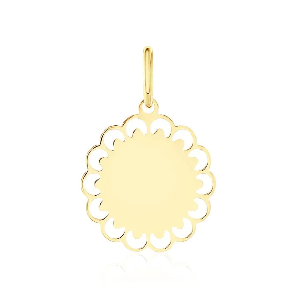 Pendentif Or Jaune 375/1000 Pastille Denteléee Gravable Diametre 13.5mm