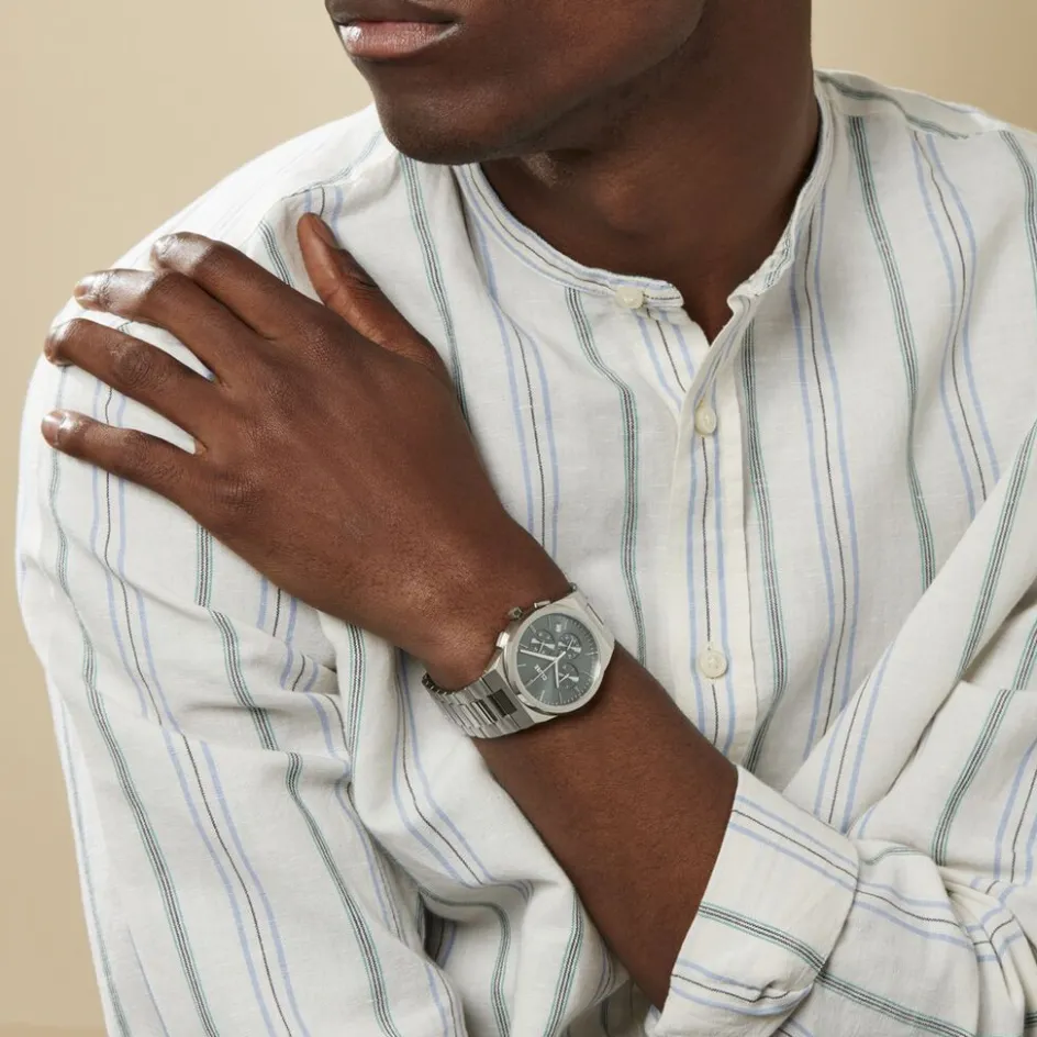Montre Cluse Vigoureux Chrono Acier Argenté Ronde Quartz Chronographe 40mm Fond Vert Lunette Argenté Bracelet Acier Argenté Cw20803