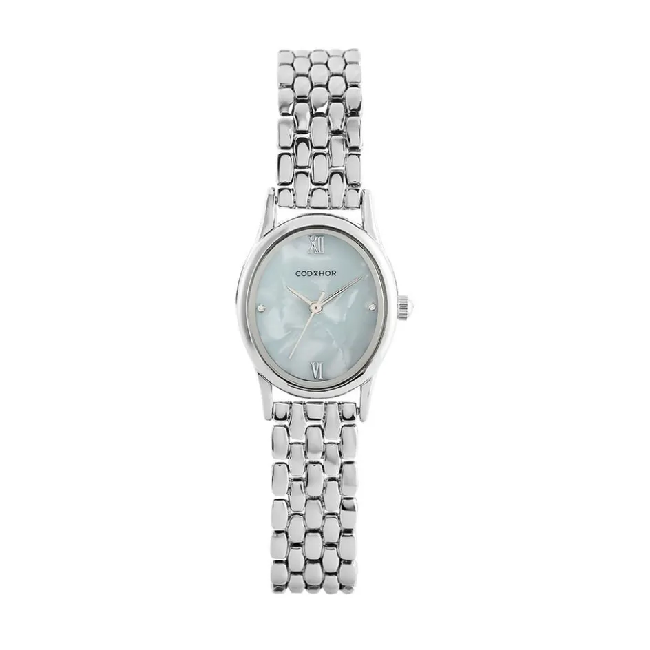 Montre Codhor Suzanne Alliage Argente Ronde Quartz 22.5mm Fond Bleu Effet Nacre Bracelet Alliage Argente P101146-d