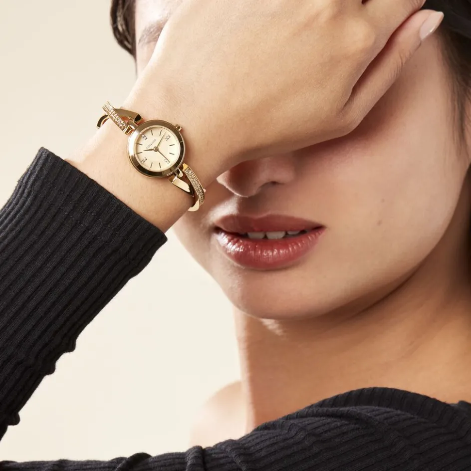 Montre Codhor Lady Alliage Doré Ronde Quartz 22mm Fond Doré Bracelet Alliage Doré Et Strass C25498