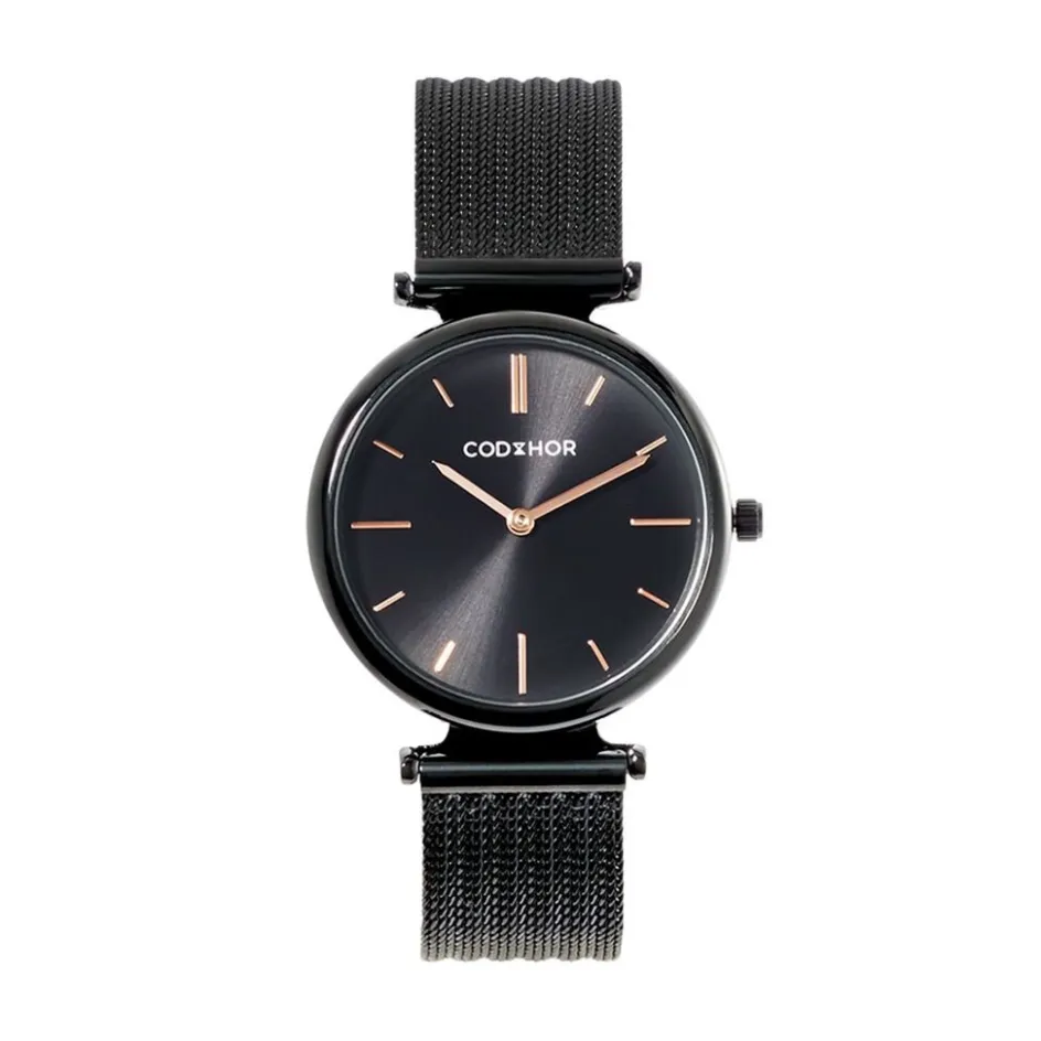 Montre Codhor Nidia Alliage Noir Ronde Quartz 33mm Fond Noir Bracelet Milanais Acier Noir P100896-a