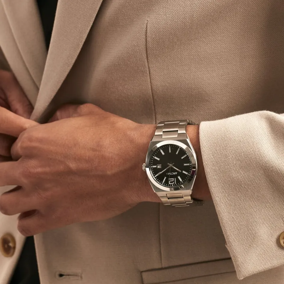 Montre Arctik Onde Acier Argenté Ronde Quartz 39mm Fond Noir Bracelet Acier Argenté Wbb0192-007