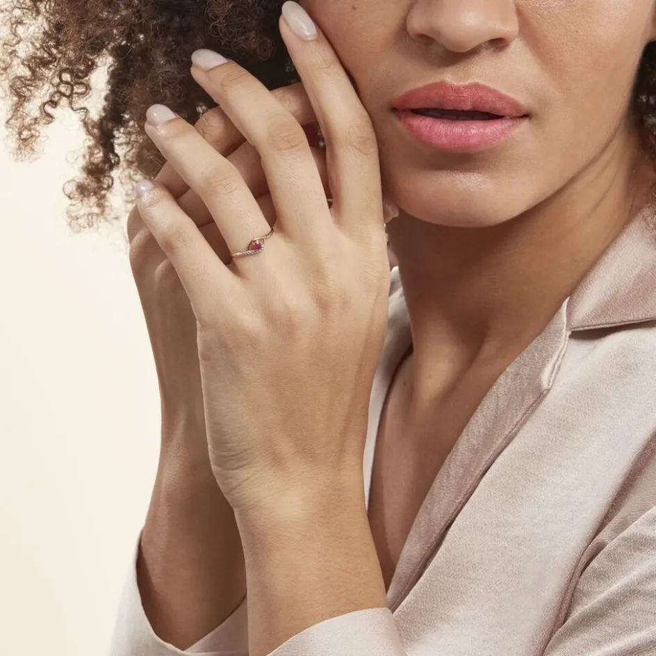 Bague Or Jaune 375/1000 Rubis Rouge 0.13 Cts Serti Griffes Corps De Bague Forme Vague